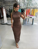 Tag: assimétrico, Azul, franzido, marrom, midi, preto, roupas casuais, saia, saia midi