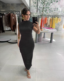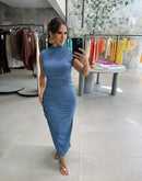 Saia midi em malha fria, franzida na lateral, fenda na latera, barra assimétrica; forrada;