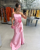 Vestido longo em zibeline, tomara que caia, detalhe de babado na frente; com bojo, acompanha rosa removível, fenda na fente, zíper atrás; Tem alças de sustentação, com forro;