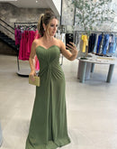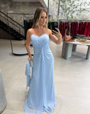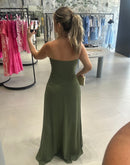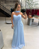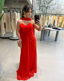 Vestido longo tomara que caia, tecido externo em chiffon, com faixa avulsa.