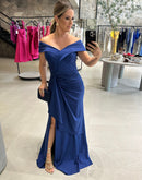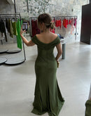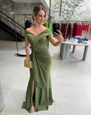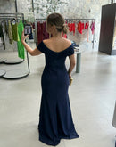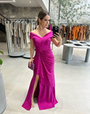 Vestido longo malha Jersey com decote em V ombro a ombro. Tecido externo: 88% poliéster 12% elastanoTecido interno: 100% poliésterCom bojoZíper nas costas