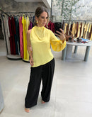 Tag: amarelo, assimétrico, crepe, manga longa, um ombro