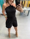 Blusa em alfaiataria, com detalhe ondulado, zíper atrás; amarração no pescoço;