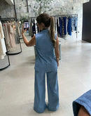 Tag: Azul, botão, colete, decote V, roupas casuais