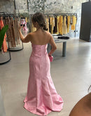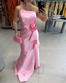 Vestido longo em zibeline, tomara que caia, detalhe de babado na frente; com bojo, acompanha rosa removível, fenda na fente, zíper atrás; Tem alças de sustentação, com forro;
