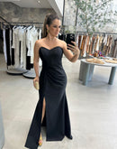 Vestido longo Prada tomara que caia; Com bojo; Zíper na laretal; Fenda na frente;