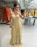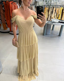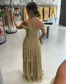 Vestido em lurex, longo em camadas, com alças, contém bojo, ziper atrás;