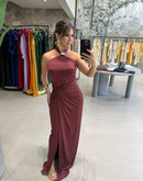 Tag: amarelo, amarração pescoço, caramelo, fenda, fivela, malha jersey, marsala, novidade, nó, roupas casuais, vestido, vestido longo