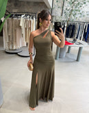 Tag: fenda, festa, festa de dia, festa noturna, formatura, franzido, longo, malha fria, marsala, novidade, oliva, poliamida, um ombro, vestido longo