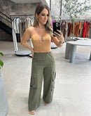 Cropped tomara que caia, fivela prata no busto, ziper atrás; aspas no busto;