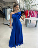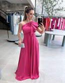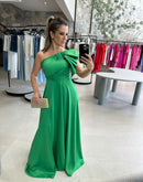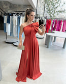 Vestido longo de uma manga com detalhe drapeado