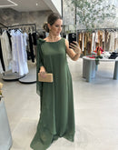 Vestido longo em chiffon, com uma manga longa, flor e faixa avulsa para amarração. Vestido Palone:100% Poliéster Sem BojoForradoAcompanha faixa de amarração