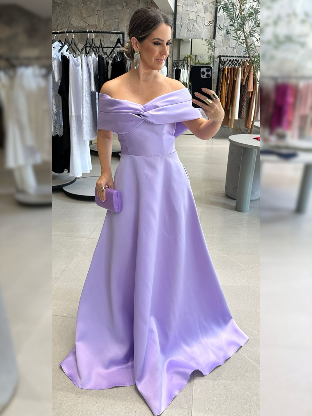 Vestido longo ombro a ombro; Com bojo; Zíper atrás;