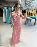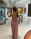 Vestido longo tomara que caia, tecido em tule, com detalhe de babados; Franzido nas costas; ziper atrás; Com bojo; Fenda na lateral;