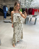 Blusa assimétrica estampada, alças com amarração nas costas;