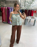 Blusa regata com detalhe franzido e estampado; Tecido 100% Poliéster