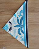 Saia midi em jeans, com fenda na frente; bolsos nas laterais e atrás; acompanha lenço estampado;