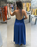 Tag: amarração pescoço, Azul, frente única, roupas casuais, vestido, vestido azul, vestido longo