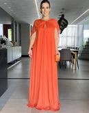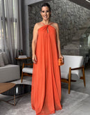 Vestido longo frente única, todo em brilho, com echarpe removível; Fenda na frente; Zíper na lateral; Tecido externo: 100% Poliéster Forro: 100% Poliéster