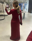 Vestido longo de malha, com mangas longas, decote transpassado e cintura drapeada. Zíper nas costasCorpo: 95% poliéster 5% elastanoForro: 100% poliésterSem bojo