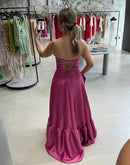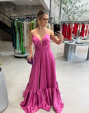 Tag: 15 anos, babado, bojo, decote V, fenda, festa, festa de dia, formatura, fucsia, longo, tomara que caia, tons de fucsia, tons fucsia, ziper