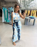regata estampada, com aamarração atrás. Com forro; Tecido externo: 100% Viscose  Tecido interno: 100% Poliéster