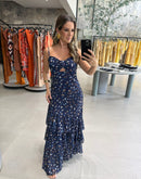 Vestido com alças, babados, estampa em poá; ziper atrás; Tem forro; Tamanho único, veste 38/40;